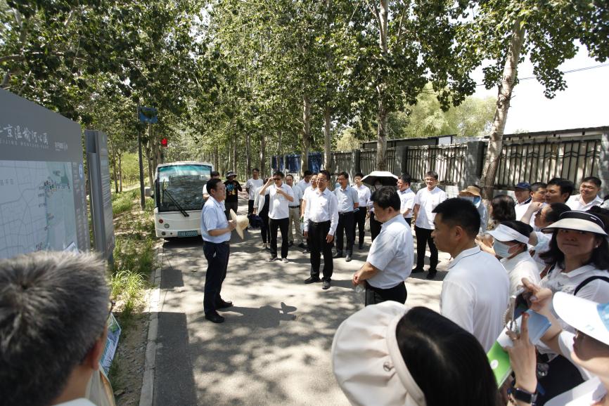 根据主题教育工作安排和集团党委年度计划,当日下午,bv伟德官网集团党委书记、董事长霍连明同志带领本部党员,冒着酷暑、顶着烈日,来到主题教育第一批现场教学点——北京温榆河公园朝阳示范区参观学习。